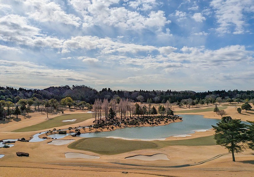 バンカーと大小の池が効果的に配され